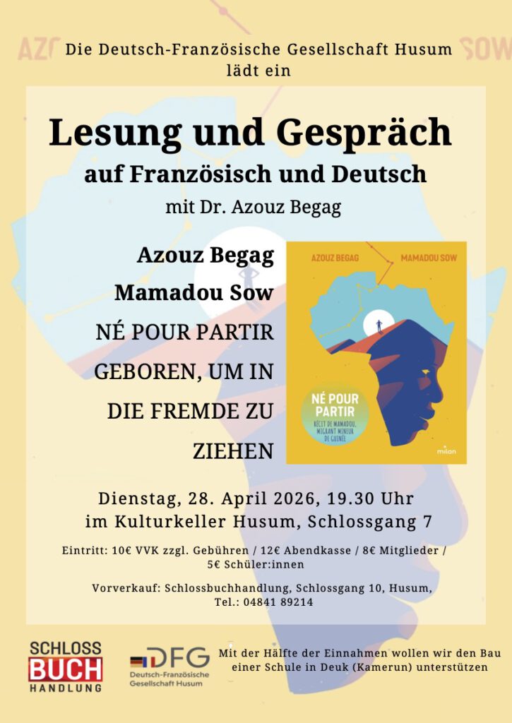 Die DFG Husum möchte französisches Flair, le savoir vivre und die schöne Sprache Frankreichs in Husum leben und erlebbar machen und allen an unserem Nachbarland Interessierten ein vielfältiges Angebot, das von kulturellen bis zu kulinarischen Veranstaltungen reicht, machen.
